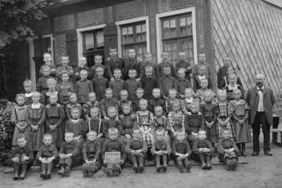 Schulklasse der Bauerschaftschule Scheddebrock mit Lehrer Caspar Gerke (1910)